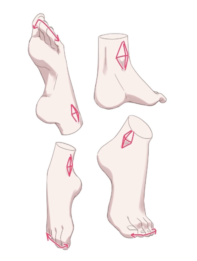• くるぶしは「ダイヤ型」:くるぶし(踝)は、単なる丸ではなく、骨の出っ張りとして「ダイヤ型」を意識すると、足首の立体感が際立ちます。