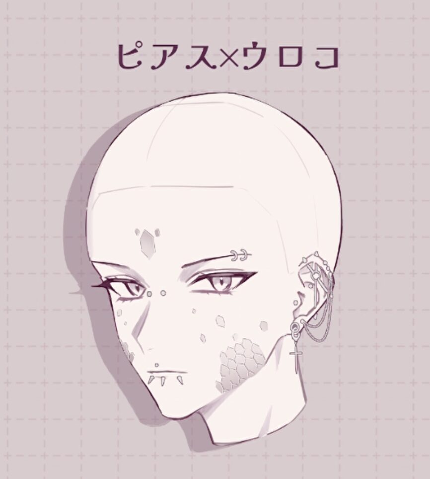 • 描き方のポイント:ウロコのような有機的な要素と、ピアスのような無機的な金属の質感を組み合わせることで、互いの特徴が際立ち、キャラクターデザインに深みと情報量が生まれます。